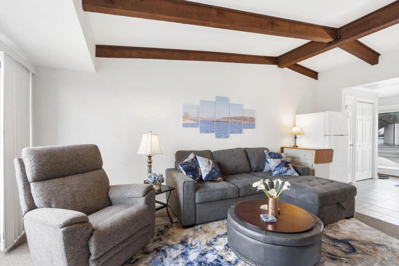 Walk-In Lake-View Oasis - Luxury Living at Kimberling CrossingExperience the perfect blend of tranquility and recreation in this single-story, 2BR/2BA walk-in condo. Boasting panoramic, year-round views of Table Rock Lake, this unit features an open-concept layout anchored by a cozy fireplace and two brand-new, oversized Anderson sliding doors. Step out onto your private, extended patio--complete with a heater and fire pit--for sunset views that never get old.Inside, enjoy supreme quiet thanks to 8-inch firewall sound insulation. Recent high-value upgrades include a new A/C system and Reverse Osmosis water filtration. Retreat to a primary suite featuring a premium Aireloom luxury mattress, while the guest room offers timeless charm with a solid wood antique set.Resort Living at Its Finest: Enjoy indoor/outdoor pools, pickleball, a fitness center, and a shared resort dock with slip leasing opportunities. Located minutes from the Kimberling City Bridge, you have a 'backdoor' route to Silver Dollar City with nearly no traffic. Short-term & Long-term rentals allowed!