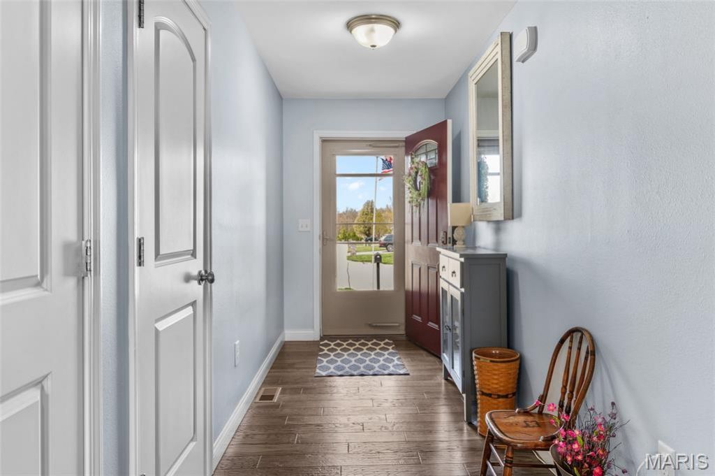 Spacious and beautifully designed home offers 2,879 sq ft of living space with 4 Bedrooms and 3 Baths! This open floorplan features a welcoming layout perfect for both everyday living AND entertaining. The vaulted kitchen is a chef's dream with abundant counter space, two pantries, stylish solid surface countertops and an angled breakfast bar with overhang seating that opens seamlessly to the bright dining area and stunning vaulted family room complete with cozy gas fireplace. Step outside through sliding glass doors to a covered deck overlooking the landscaped, fenced yard and farm field in back - perfect for relaxing with your morning coffee. The peaceful backyard also offers a large patio, partially covered, and an above-ground pool - perfect for hosting gatherings! Don't miss the spacious detached shed -- ideal for a workshop or studio -- fully wired with electricity and insulated walls. The primary suite offers a spacious retreat with a walk-in closet and en-suite bath featuring a soaking tub and separate shower along with double vanity. Rounding out the main level are a full bathroom and two additional bedrooms, generously sized with walk-in closets for plenty of storage. Convenient main floor laundry room. The finished lower level provides even more living space, ideal for recreation, home office, guest area or even a second living space! Spacious family room boasts sink/bar area with sliding glass doors leading to large patio and yard. Roomy bedroom offers daylight windows and large closet. Full bathroom. Huge storage area and additional laundry hookups. SO many possibilities! Big 3-car garage offers insulated doors and openers along with overhead storage. Great location - close to interstate, shopping and dining. This home truly combines space, comfort and functionality - don't miss the chance to make it yours!