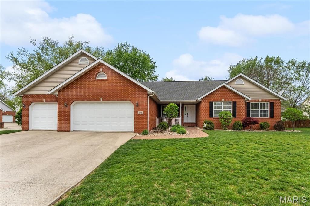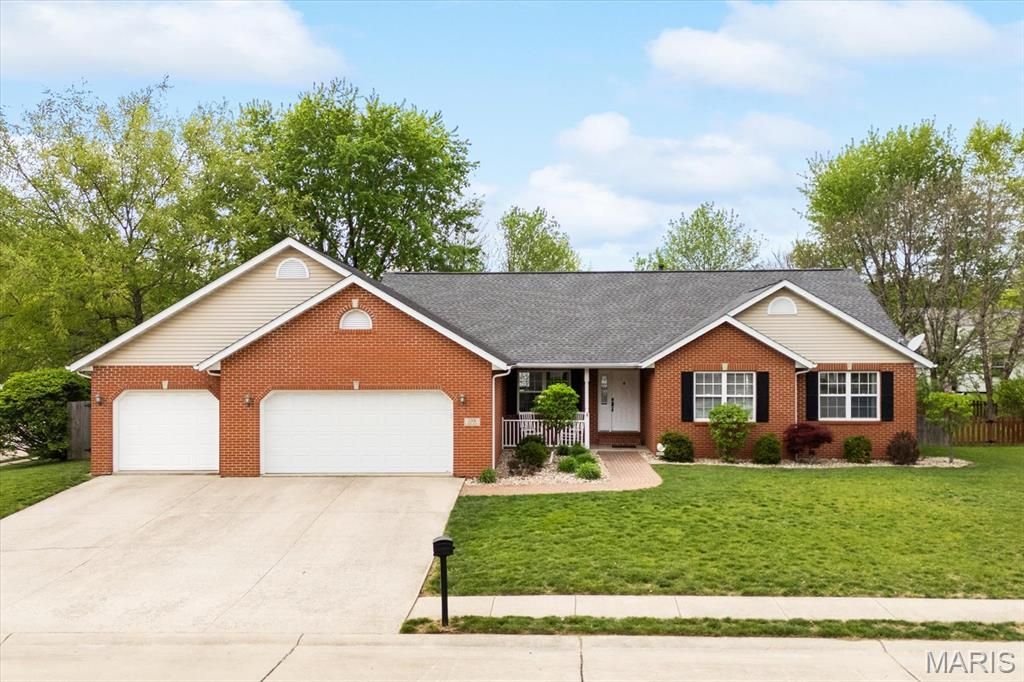 Step into a home that has been impeccably maintained and thoughtfully designed, offering a perfect blend of comfort, style, and functionality. From the moment you enter, you're welcomed by an expansive open floor plan enhanced by rich LVP flooring, soaring vaulted ceilings, and a stunning gas fireplace that anchors the light-filled family room-creating an inviting space ideal for both everyday living and elegant entertaining. The heart of the home is the beautifully appointed kitchen, featuring abundant cherry cabinetry, newer stainless steel appliances, a convenient breakfast bar, and a generously sized pantry. Just beyond, the sunlit breakfast nook provides the perfect setting for morning coffee, with direct access to a spacious deck that seamlessly extends your living space outdoors. Retreat to the luxurious primary suite, where vaulted ceilings add to the sense of openness, complemented by a large walk-in closet and a spa-inspired ensuite bath. Enjoy refined finishes including updated tiled flooring, a relaxing garden tub, separate shower, and rich cherry cabinetry with updated fixtures-designed to offer both comfort and sophistication. The main level also offers two additional well-sized bedrooms, while the lower level expands your possibilities with a large recreation room, a versatile office or sleeping area with a generous closet, a 3/4 bath, and a substantial unfinished space ready for storage or future customization. Additional highlights include a brand-new roof (2026), central vacuum system, and radon mitigation system-providing peace of mind and modern convenience. Step outside to enjoy the expansive deck and fully fenced backyard, creating the perfect backdrop for gatherings, relaxation, and outdoor living.Ideally located near highways, shopping, scenic trails, O'Fallon Sports Park, and Scott Air Force Base, this exceptional home offers both convenience and an elevated lifestyle-ready to welcome you home.