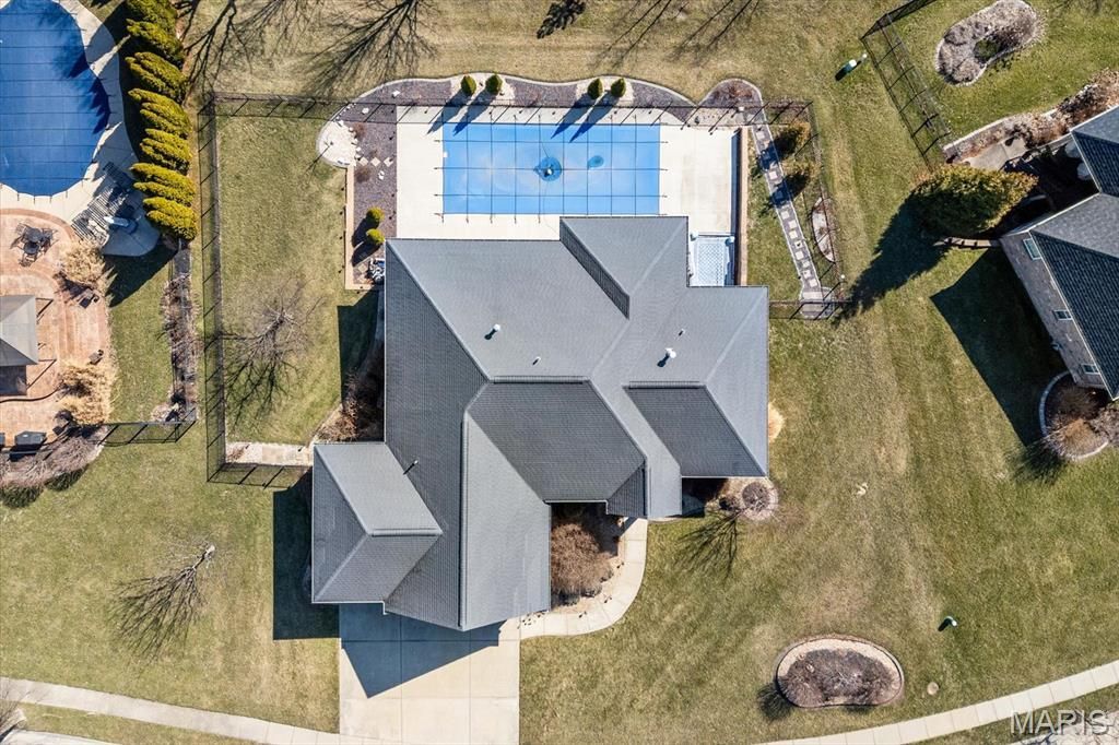Backyard oasis takes center stage with a saltwater fiberglass pool featuring a large tanning shelf, two fountain jets, two bubblers, and depths ranging from 6-5'6-perfect for relaxing or entertaining. The pool area is complemented by a covered deck that overlooks the space and provides seamless indoor-outdoor living. Pool will be opened prior to showings starting April 9th!Located in the O'Fallon School District (K-12), this custom State Construction home in sought-after Cobblestone offers an open split-bedroom floor plan with formal dining and an open kitchen highlighted by a massive granite island and extended breakfast niche with deck access. Hand-scraped hardwood flooring flows through the kitchen, great room, and hallways, while the great room features abundant natural light, a gas fireplace, and built-in bookcases.The private primary suite includes a large walk-in closet and luxury bath with dual vanities, stacked linen cabinet, corner soaking tub, oversized shower, and separate commode. The guest wing features two spacious bedrooms connected by a pass-through Jack-and-Jill bath.Additional highlights include a laundry room with drop zone, oversized 3-car garage with utility door, and a partially finished lookout lower level with 9' ceilings, family room, egress window, and bath rough-in-offering excellent potential for future finished space.