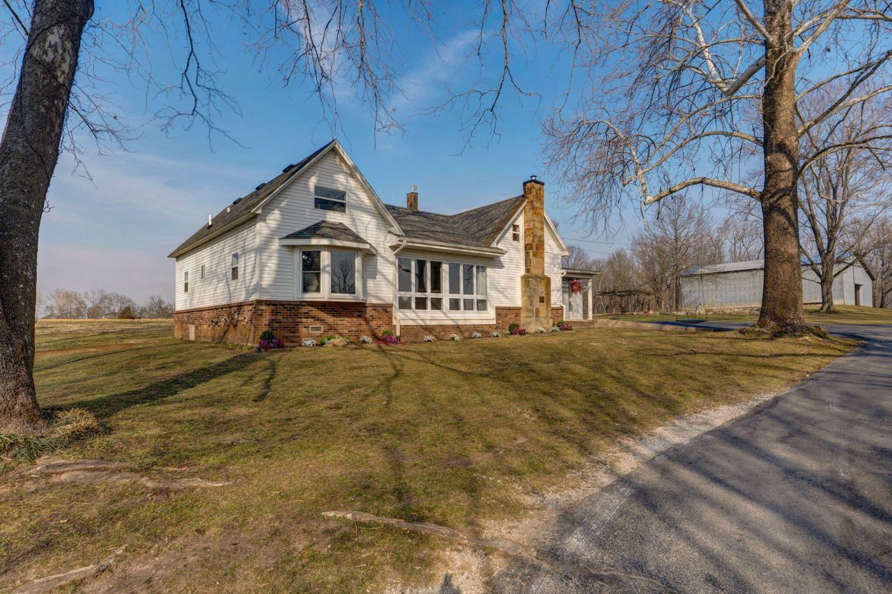 Pristine farmhouse on 5 acres at the end of a paved private drive, perfectly located just 10 miles from Springfield Airport and 8 miles from I-44 -- offering privacy without sacrificing convenience. This beautifully landscaped property is a gardener's dream, featuring 11 raised garden beds with trellises, a custom stone herb garden, raspberry, strawberry, and blackberry patches, along with peach trees and pear trees.Furthermore, take advantage of the RV pad, along with a fire pit, and gazebo. Enjoy your evenings next to the large scenic pond. The land has been soil tested and is ready for your homestead plans or livestock. A massive 48x65 workshop includes a custom-built chicken coop and lean-to for farm stock, providing excellent functionality for hobby farming or business use.Inside, the home welcomes you with a cozy sitting area featuring a wood-burning fireplace with recessed lighting and built-in cabinets and shelving. Floor-to-ceiling windows in the living and dining room offer stunning wildlife views and natural light. Just off the kitchen is a bonus room with full bathroom that could serve as a private master suite, guest quarters, or home gym.Upstairs, the bedrooms are complemented by a spacious playroom and full bathroom, creating the perfect setup for family living and entertaining.This property truly combines comfort, charm, and versatility -- a rare opportunity to own a turnkey farmhouse retreat.