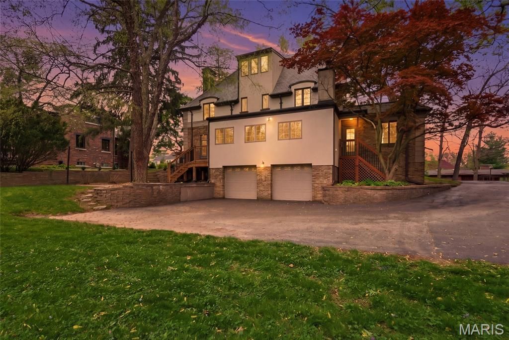 A true French Provincial dream, this extraordinary residence in sought-after Country Club Place seamlessly blends timeless architecture, exquisite craftsmanship, and thoughtful modern updates across nearly 5,000 sq. ft. of refined living space. From the moment you arrive, the commanding curb appeal sets the stage featuring a circular drive, lush mature landscaping, striking masonry, and a slate roof accented by copper gutters. Step through the formal foyer and be welcomed by original millwork, gleaming hardwood floors, and elegant crown molding throughout. The main level offers exceptional flow, ideal for both everyday living and entertaining, with a formal living room, cozy family room, formal dining room, breakfast room, and a beautifully updated kitchen complete with granite countertops, stainless steel appliances, and an oversized butler's pantry. The front living room showcases a stunning wood-burning Italian rathskeller fireplace and a charming bay window with built-in bench seating. Just beyond the breakfast room, the family room features a brick accent wall and gas fireplace, creating a warm and inviting atmosphere. This space opens to a large deck overlooking a two-tiered patio and a picturesque, tree-lined lot with a tucked-away fire pit-perfect for crisp fall evenings under the stars. The second level offers three spacious bedrooms, including the primary suite with a large walk-in closet, two additional closets, and an attached shared full bath with separate tub and shower. Two additional bedrooms and a second full bath complete this level. A tucked-away spiral staircase leads to a charming loft-style bedroom, ideal for guests, a studio, or private retreat. The finished lower level is an entertainer's dream, featuring a large recreation room with wet bar, built-in refrigerator, a third fireplace, full bath, and bonus sleeping room. Professional waterproofing by Woods Basement Systems provides added peace of mind. Abundant storage is found throughout the home, including a tuck-under two-car garage with a separate storage room. Additional highlights include zoned heating and cooling for year-round comfort. This remarkable home is truly a showstopper-where old-world charm, character, and craftsmanship have been meticulously preserved and thoughtfully enhanced over time. Property is agent owned. Property has passed county inspection! Some photos virtually staged to show potential.