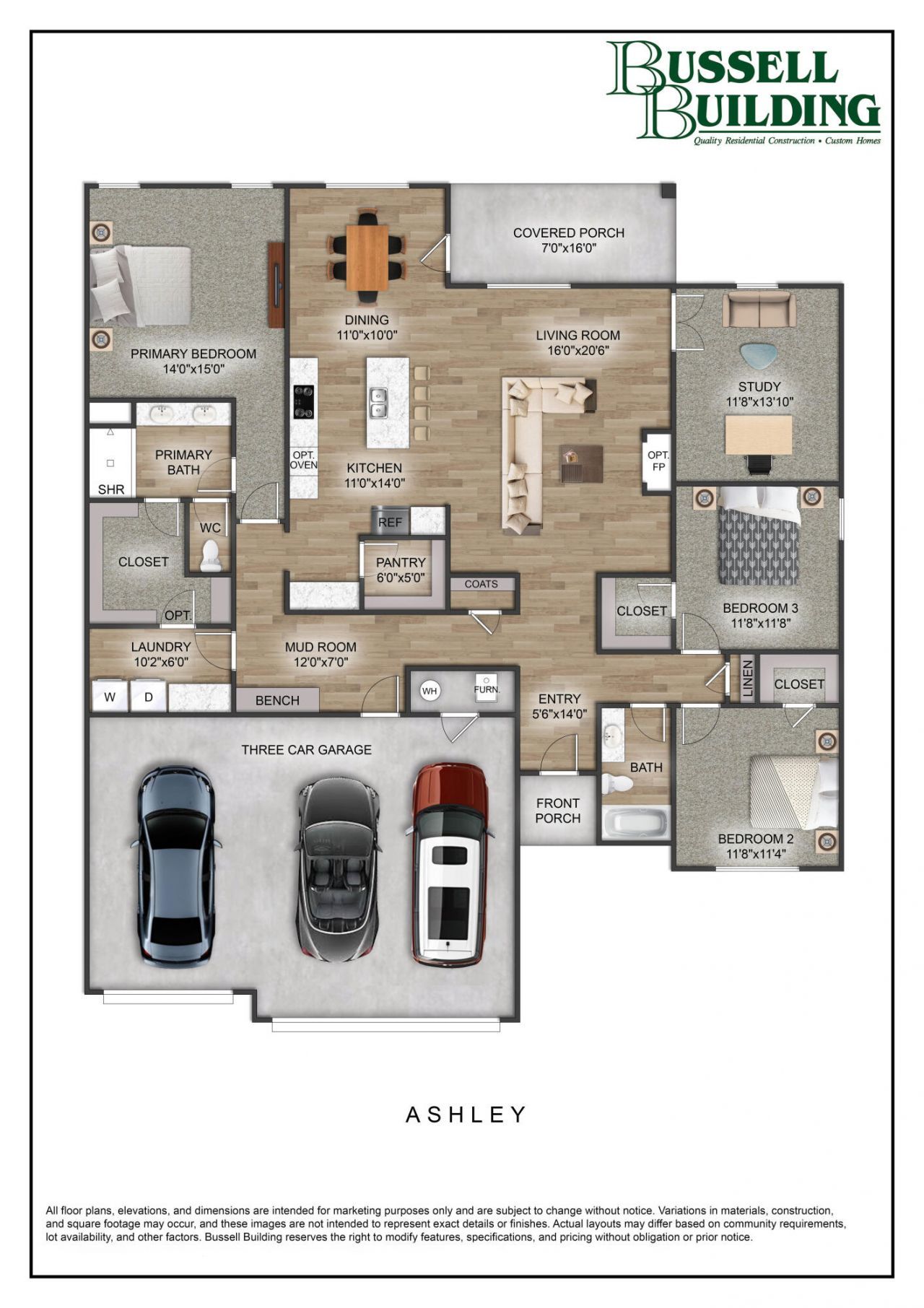 The Ashley offers almost 2,200 sq. ft. of perfectly designed living space, ideal for families and modern lifestyles. The open-concept living room, dining area, and kitchen create a warm and inviting hub for gatherings, while the private primary suite offers a spacious retreat with an en-suite bath and walk-in closet. With two additional bedrooms, a flexible study, a mudroom, and a three-car garage, the Ashley balances functionality and style to create a home that fits your life.*Pictures may be of a similar home*