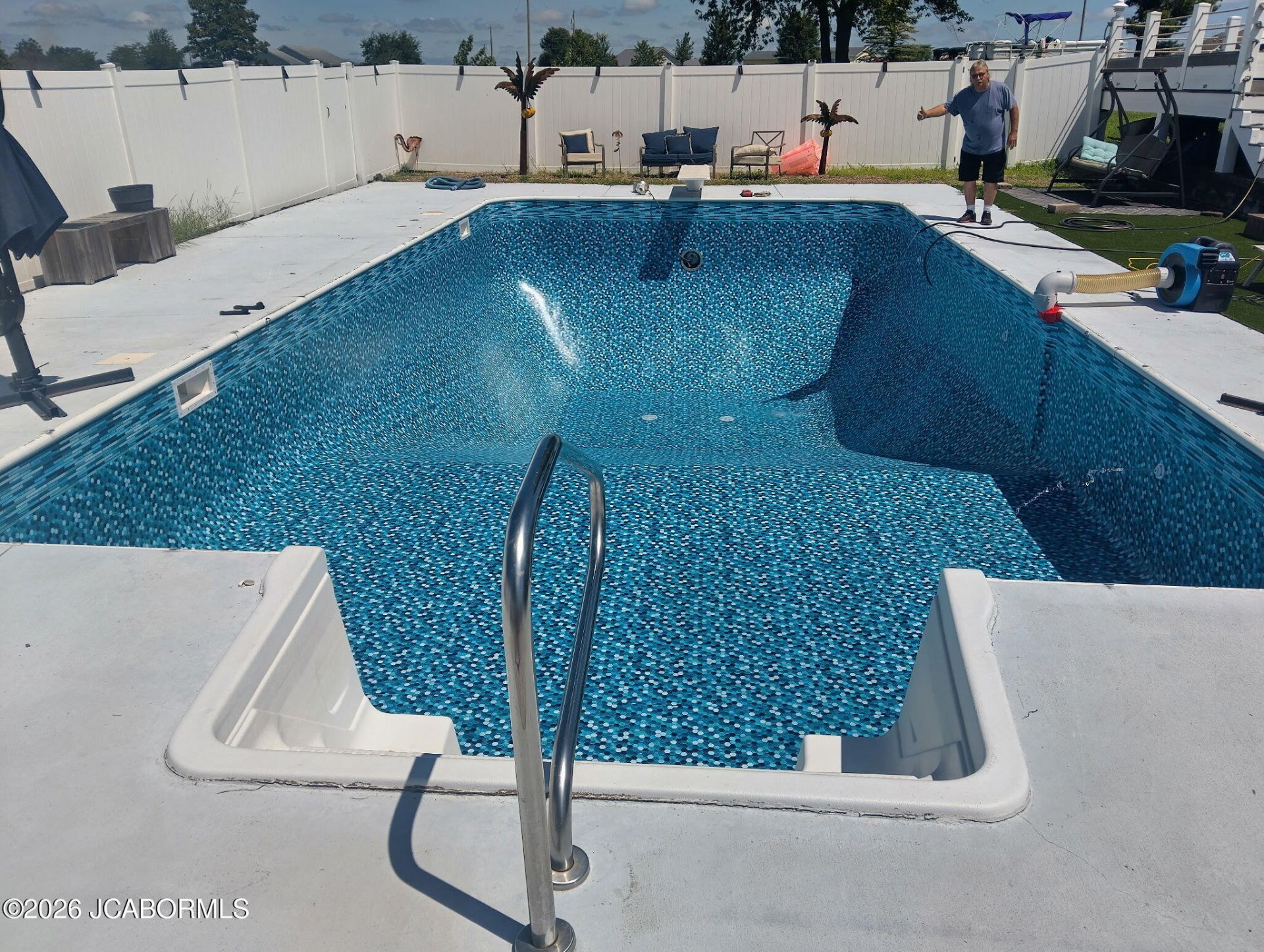 Beautiful Home / Oasis with it's amazing back yard that includes a 36 x 18 in ground pool with new liner in 2025, hot tub, Lots and lots of concrete and trex decking, pool side gazebo, covered back porch sitting on 2.1 acres at the edge of town. Inside the home you experience a open floor plan with tall ceilings, wood flooring, huge kitchen with granite counter tops, large island, stainless appliances, wine cooler. Just what you would expect with the large primary bedroom with large bathroom with walk in shower and 18 x 5 closet. Down stairs has a bar area, theater room, storm room, bedroom, another bathroom, large unfinished area with a garage door. Dual zone furnace, 80 gallon water heater. 4 outside faucets. Brick and rock exterior. Seller has a $10,000 allowance for replacing the hot tub that has a leak and misc. Not far from Coffman Beach Lake Ozark access. Built in entertainment center.
