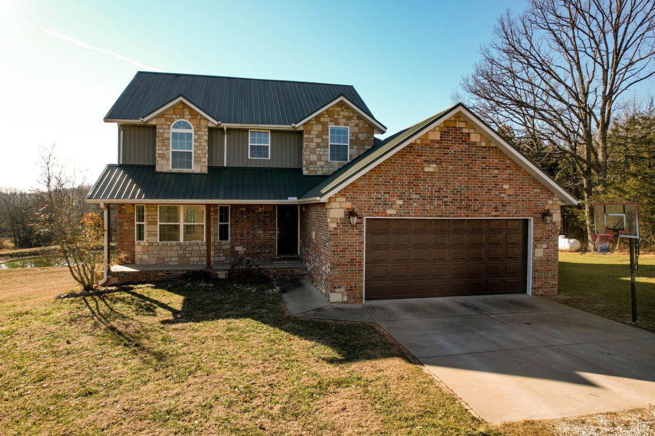 PRICE IMPROVEMENT! Gorgeous custom built 4000+square foot home tucked away on 9.8 acres over looking your own private pond. This home offers privacy, space, and exceptional versatility for enjoying the country life style. The main level features an inviting living room with fireplace, formal dining or office plus a spacious kitchen dining area with island, granite countertops plus all the appliances stay. This leads out to a covered screened deck and open deck that overlooks your land and pond perfect for relaxing and entertaining. The extra large primary suite has a four-fixture bath including a jetted tub and walk in shower. The utility room comes with extra cabinetry, bench seating and the washer/dryer stay. Upstairs offers two bedrooms, one with an ensuite bath, bathroom and a play room or 4th bedroom. The basement is ideal for entertaining and storage, featuring a family/game room, wet bar, play house tucked under the stairs, bath, office or optional bedroom (no closet) large storage room, safe room and John Deere room with exterior access. Additional features include zoned heating and air, whole-home generator, water softener and a durable metal roof.Completing the property is a newer 40X30 barn with a welcoming porch, electric, two garage doors and one with 10 foot clearance making it ideal for equipment, hobbies or livestock.This home and property offers it all with a great location in Fair Grove school district and not too far to Fellows Lake and all it has to offer. Take a look today!