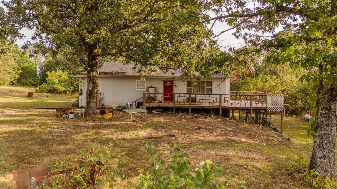 Ready for an amazing opportunity!! Perfect for reworking a place to fit your needs! Just 5 minutes to Bull Shoals Lake and Buck Creek Campground, you have the perfect spot for a vacation getaway!! Not to mention the famous Peel Ferry which provides not only a scenic ride across the lake enjoying the beautiful views, but it's just 20 minutes to Harrison Ark and much more. This fixer upper property invites a beautiful 7.4 acres nestled in just far enough off the highway you almost miss it driving by which gives that readily available site, but private location. This 2 bedroom, 1 to 1 1/2 bath home is curved by a huge deck on right side inviting tons of room for any occasion presented its way. The basement is fully under the home, unfinished, but could add another living space and bedroom to the mix! A 2-car attached car port sits just off the basement on the backside of the home, as well as a small metal barn just yards away, providing lots of extra spaces to store many items a property owner may need tucked away and out of the elements. Just so many opportunities within reach!!