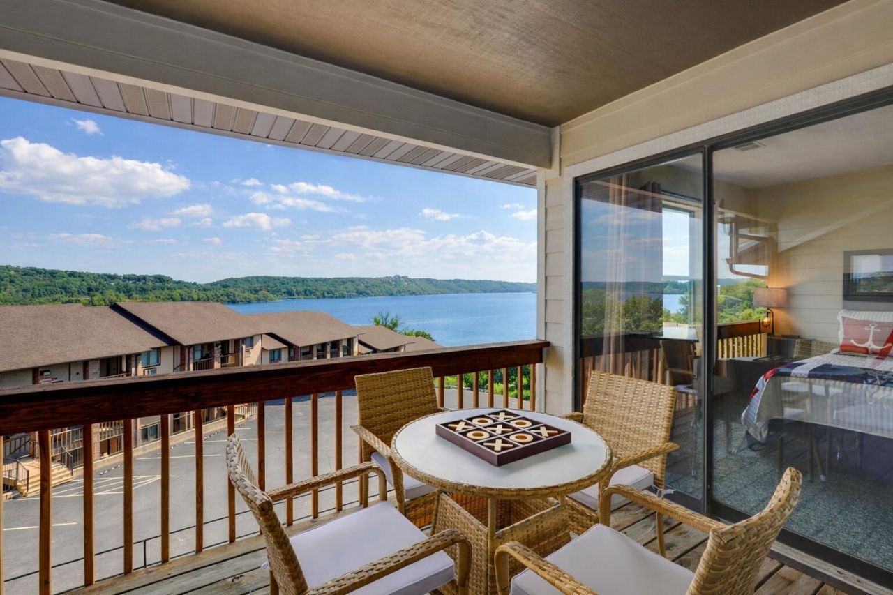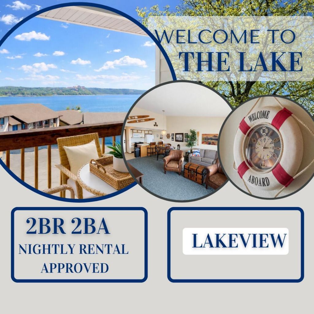 Step back in time with this unique 2BR 2BA successful nightly rental condo. If you like nostalgia, you'll LOVE the Retro Table Rock décor! Turnkey and Fully Furnished! Breathtaking View of the lake and the Kimberling City Bridge. Amenities include indoor & outdoor pools, pickleball courts, half basketball court, playground, and restaurants on-site, Crossing Cafe & coming soon, Crazy Craig's Shipwreck Bar & Grill. Less than 1 mile to Port of Kimberling Marina & What's Up Dock Marina. 10 miles to Silver Dollar City. HOA dues include water, sewer, trash, building insurance, exterior maintenance, lawn care and ALL amenities!