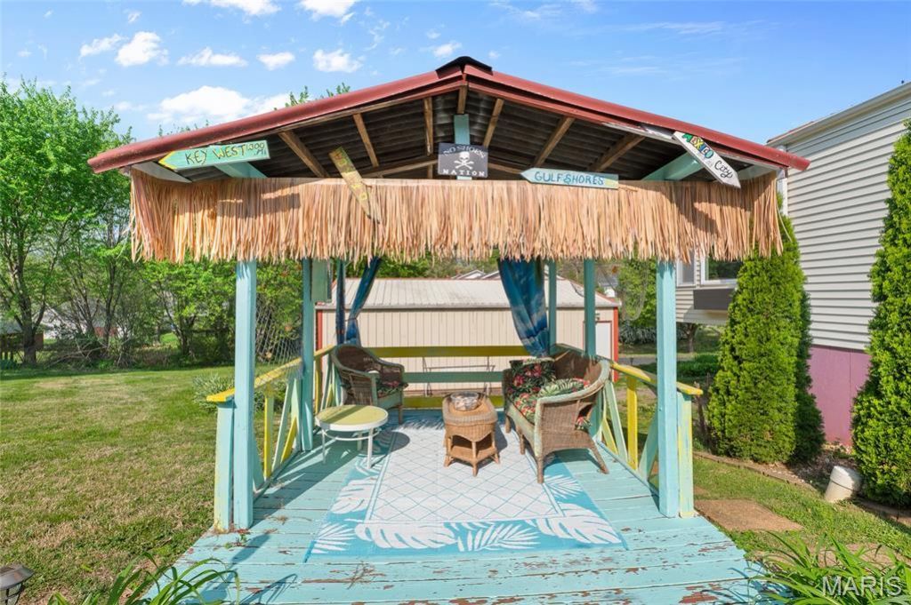 Very well maintained and full of character, this charming 2-bedroom, 1-bath home offers a wonderful blend of comfort and functionality. The main living areas feature hardwood flooring, while a bright sunroom with vaulted ceilings, energy-efficient windows, and its own mini-split HVAC unit provides a versatile space to enjoy year-round. The home includes a spacious lower level with a large recreation room, kitchenette, laundry area, and walk-out access to a covered patio, offering additional flexibility for a variety of uses. Outdoor features are equally impressive, with a beautifully landscaped backyard designed with multiple sitting areas, including open decks, patios, and a covered deck-ideal for relaxing or entertaining. For those needing extra storage or workspace, the property includes a detached 1-car garage (21 x 15), an additional carport, and a substantial 30 x 24 pole barn equipped with an overhead garage door and opener. The main portion of the home is topped with a durable tile roof, and the addition above the sunroom received a new shingle roof in 2025. Additional highlights include two extra cabinets in the dining room that will remain with the home. This property offers a unique combination of charm, thoughtful updates, and versatile spaces both inside and out.