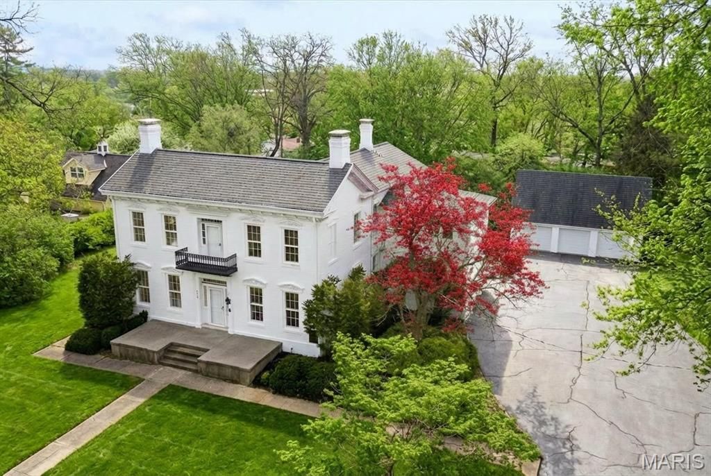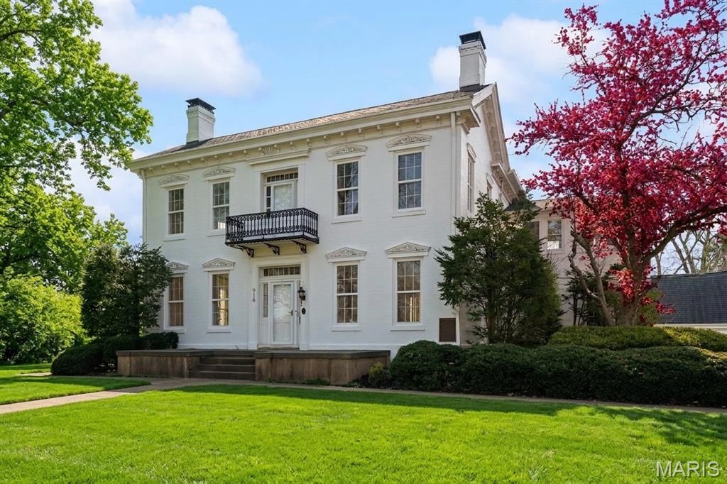 Welcome to the David Chamberlin House-affectionately known for generations as The Mansion. Steeped in 170 years of Illinois heritage, this Italianate masterpiece is more than just a home; it is a once-in-a-lifetime opportunity to own a piece of Lebanon's history. Sitting on a lush, sprawling lot just shy of an acre near McKendree University, the estate offers a rare mix of deep-rooted character and modern, flexible living.As you walk up, you're greeted by a canopy of century-old oaks and the stunning symmetry of a home built to last. If you look closely at the brickwork, you can still see the care put into it by the Chamberlin sons, who hand-smoothed the bricks themselves back in 1855. Just to the right of the front door, you'll find the Key to the Past plaque from the St. Clair County Historical Society-a literal badge of honor that marks your new role as the custodian of a true local landmark. This sense of history follows you from the ornate window hoods and delicate Juliet balcony right through the front door.Step inside the grand foyer and let the 1850s craftsmanship take your breath away, from the original walnut handrails to the soaring ceilings. The twin formal parlors are just begging for a holiday party, and you won't want to miss the dining hall's rare musical lyre motif in the archway, a charming nod to the home's long-standing connection to the neighboring college. This elegance flows naturally into the heart of the home, where the kitchen offers a spectacular intersection of industrial-chic style and historical grit. With exposed brick walls, a professional stainless suite, and a vented copper hood, it's a chef's dream that doesn't sacrifice an ounce of character.The kitchen serves as your gateway to the outdoors, opening right onto the lower veranda and the home's distinctive Ell wing courtyard. Historically the heart of the estate's operations, this L-shaped design now creates a private, sun-drenched sanctuary where you can sip your morning coffee by the stone waterfall and lily pond, completely tucked away from the rest of the world. When you're ready to retreat for the evening, the journey continues upstairs to a rare double-decker gallery that adds a dash of romantic Southern flair. You'll love the upper screened sleeping porch-a historic luxury designed for breezy summer nights-while the primary suites feel like a boutique hotel, complete with museum-quality fireplaces and iridescent Majolica tiles.The magic of the estate extends even further, leading you downstairs to a cozy library with custom oak shelving that offers the perfect academic retreat. Just across the yard, the functionality of the property is amplified by a detached 3-car carriage house that is a total game-changer. It features a spacious workshop area for your weekend projects and a 421 sq. ft. Accessory Dwelling Unit (ADU) above, complete with its own kitchenette and vaulted wood ceilings. Whether you use it for long-term guests,