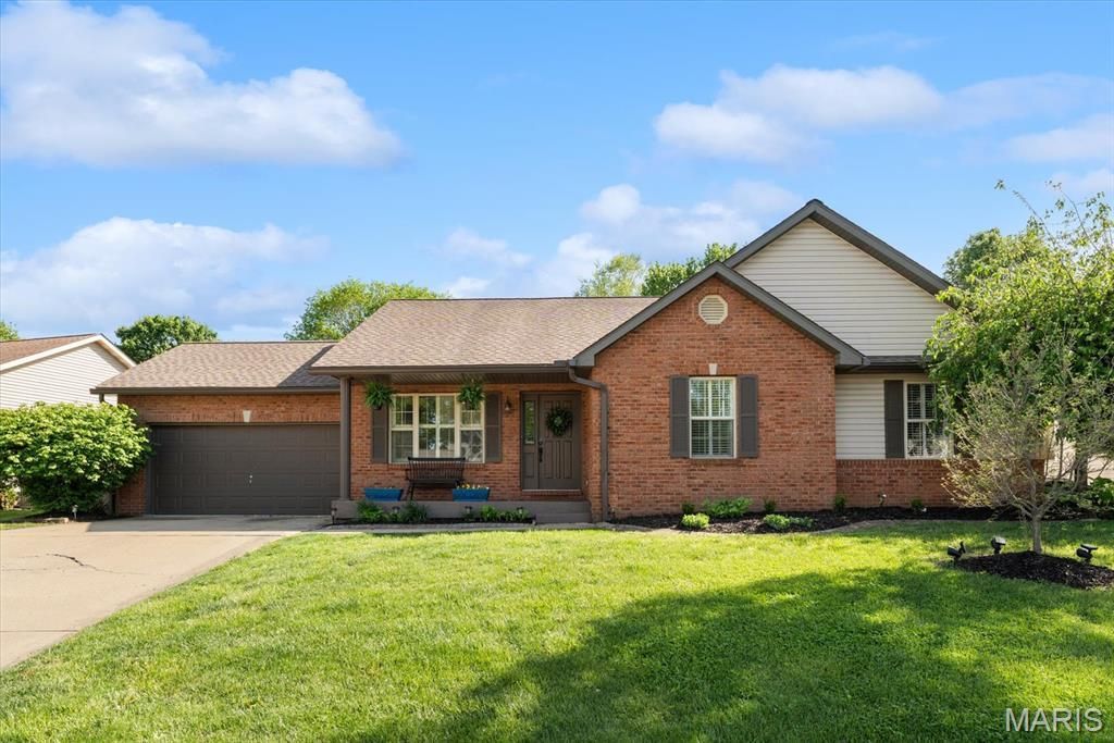 Move-in ready and loaded with upgrades, this beautifully maintained ranch offers the space, layout, and features today's buyers are looking for! Step inside to an open floor plan with vaulted ceilings, wood floors, fresh paint throughout, and updated fixtures that give the home a clean, modern feel. The kitchen features granite countertops, stylish backsplash, stainless steel appliances, and flows seamlessly into the main living and dining areas-perfect for everyday living and entertaining. The main level includes 3 bedrooms and 2 full baths, including a spacious primary suite with ensuite bath and double sinks. Downstairs, the finished basement adds incredible versatility with a large rec room, office, bonus room, half bath, and plenty of storage space. Enjoy outdoor living in the fully fenced backyard with gorgeous landscaping and a covered patio complete with TV. Additional highlights include a 2-car garage, new A/C and water heater-2024. Conveniently located near Scott Air Force Base, shopping, and restaurants, this home checks all the boxes.