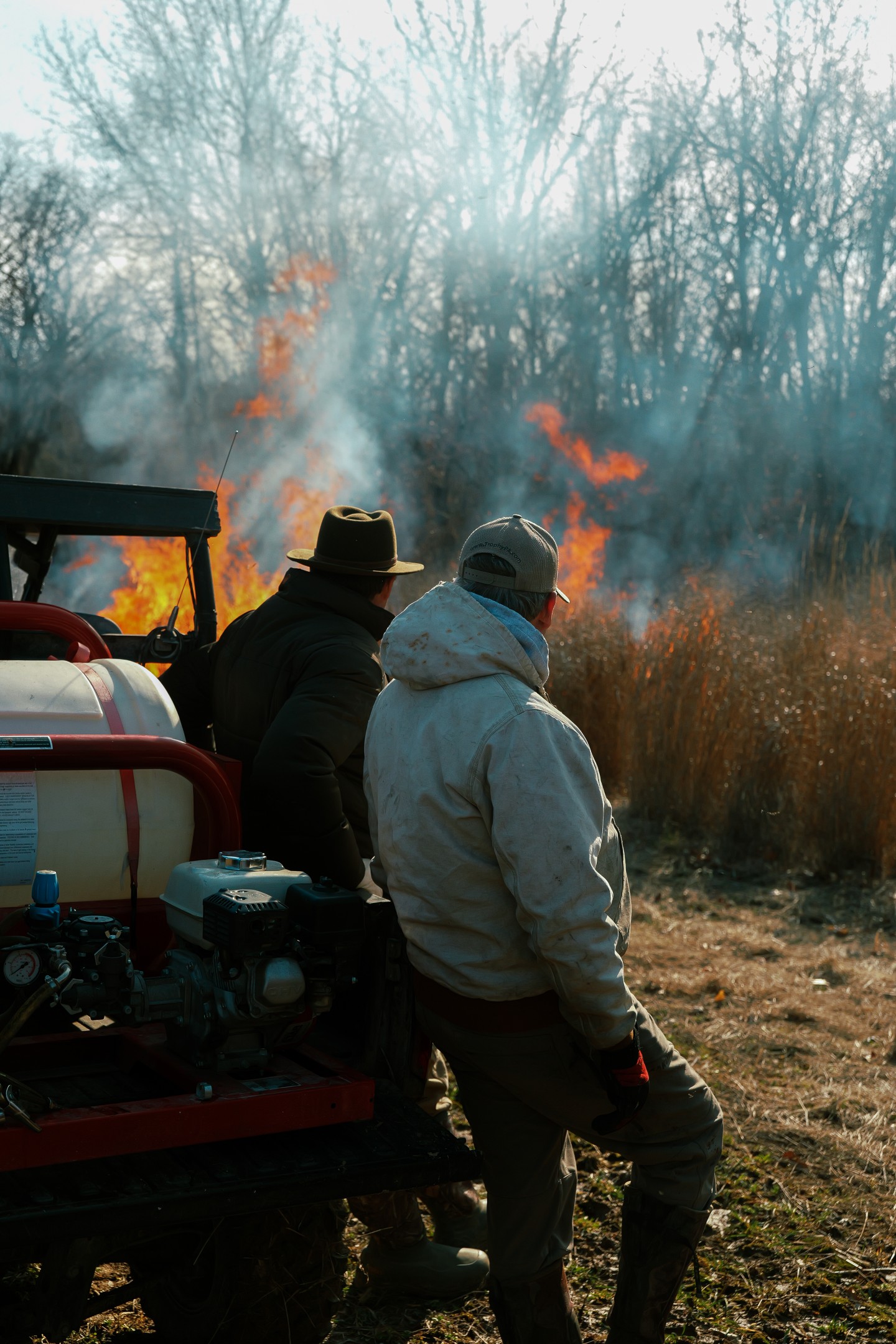• Holding crew (2–4): Patrol the firebreaks with water (backpack sprayers, ATV sprayers, or a truck-mounted tank). Their job is to catch any spots that cross the line and keep the fire inside the burn unit.